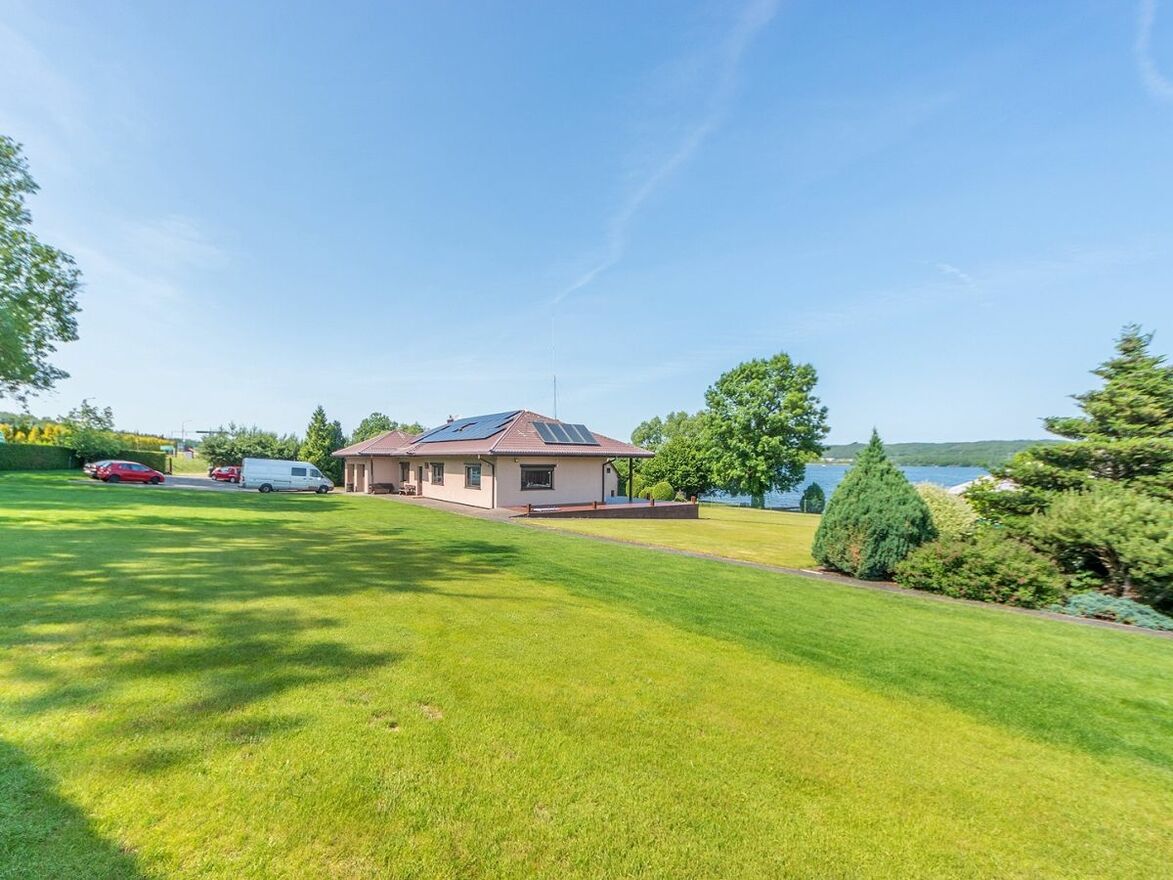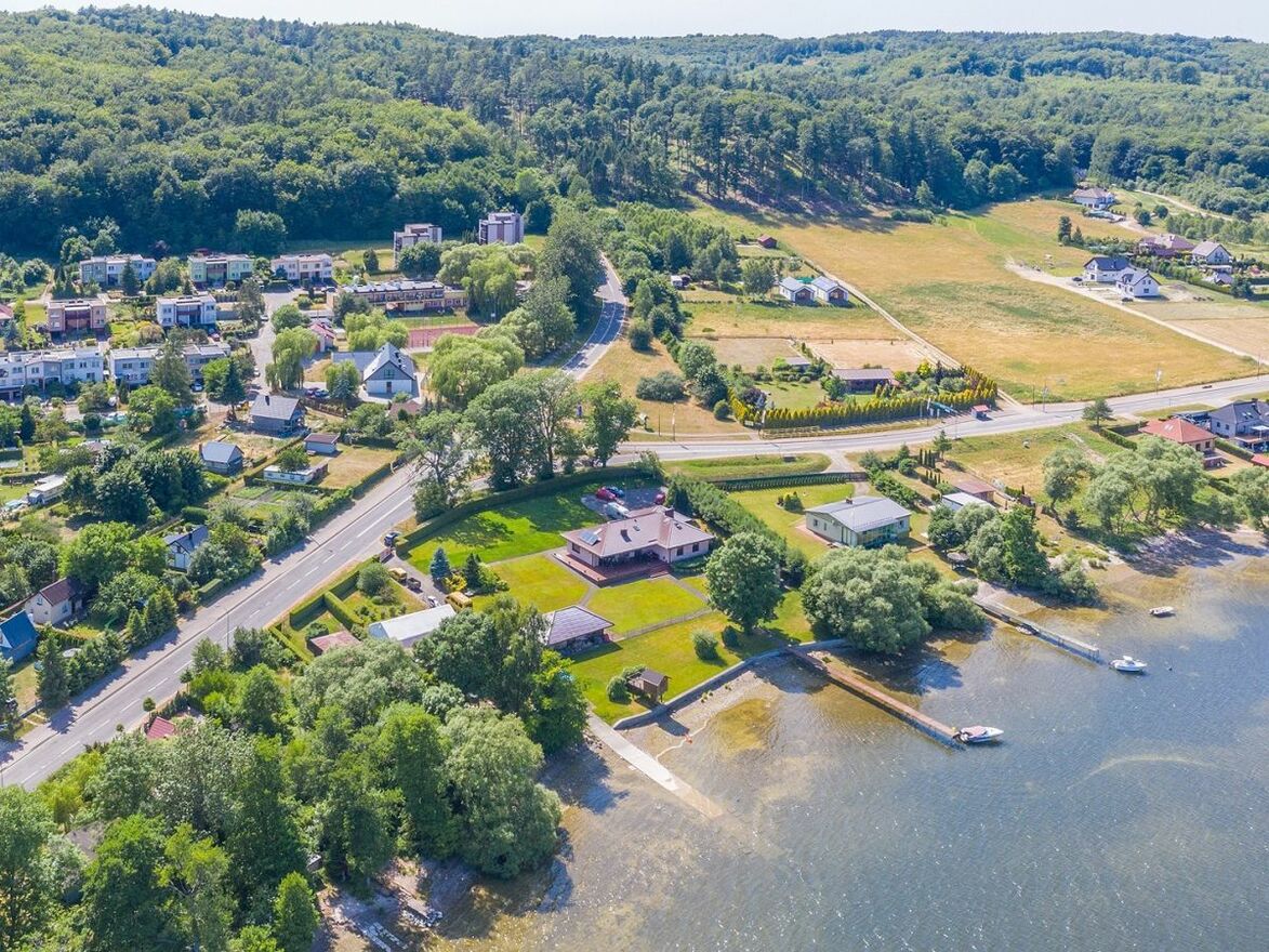 Dom parterowy z poddaszem użytkowym o powierzchni całkowitej 305 m2, użytkowej 205 m2, posadowiony na działce 4894 m2, mającej BEZPOŚREDNI DOSTĘP DO JEZIORA ŻARNOWIECKIEGO, w Nadolu, gminie Gniewino w powiecie wejherowskim. Do Wejherowa ok. 20 km, do Dębek 21 km.Budynek zbudowany z porothermu, ocieplony styropianem 12cm, otynkowany. Dach pokryty blacho-dachówką, baterie słoneczne i panele fotowoltaiczne o dużej mocy do ogrzewania wody. Garaż dwu-stanowiskowy w bryle budynku, okna drewniane mahoń z firmy Bertrand.