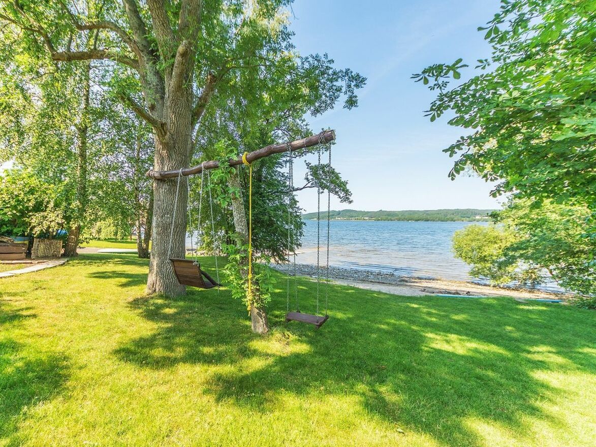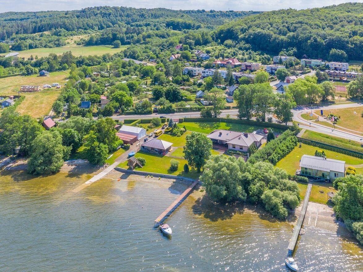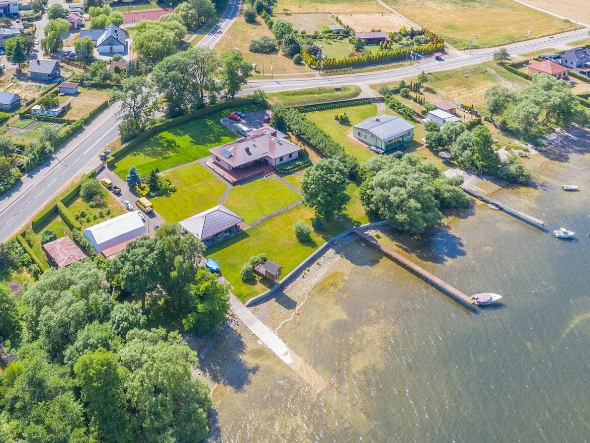 Działka o powierzchni 4894 m2, na której został posadowiony dom parterowy z poddaszem użytkowym o powierzchni całkowitej 305 m2, użytkowej 205 m2, mająca bezpośredni DOSTĘP DO JEZIORA ŻARNOWIECKIEGO, w Nadolu, gminie Gniewino w powiecie wejherowskim. Do Wejherowa ok. 20 km, do Dębek 21 km. Budynek zbudowany z porothermu, ocieplony styropianem 12cm, otynkowany. Dach pokryty blacho-dachówką, baterie słoneczne i panele fotowoltaiczne o dużej mocy do ogrzewania wody. Garaż dwu-stanowiskowy w bryle budynku, okna drewniane mahoń z firmy Bertrand.Na parterze: salon z kuchnią, 3 sypialnie, łazienka, WC. Na poddaszu: duża część do zagospodarowania, pokój, łazienka. Klimatyzacja -3 agregaty.