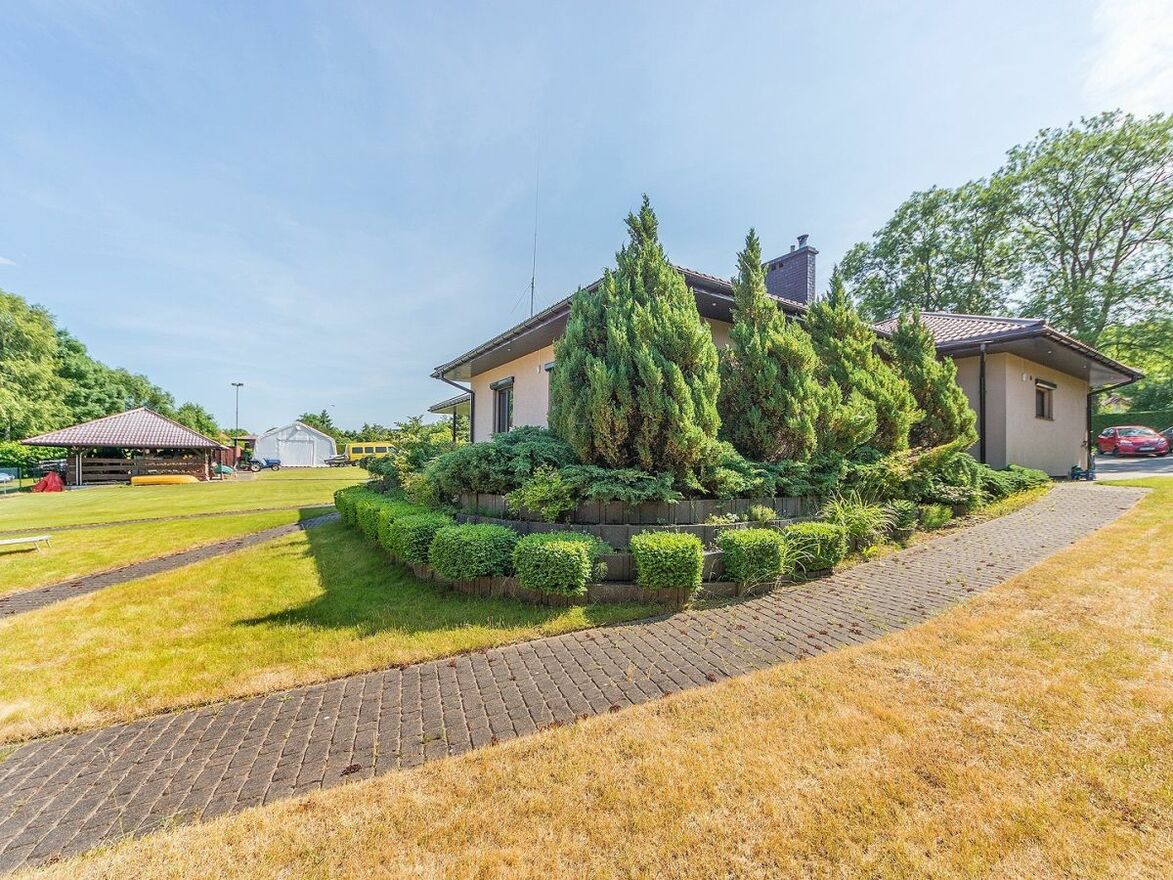 Ogrzewanie: (podłogowe i grzejnikowe)Piec olejowy, piec na węgiel, drewno, kominek, gaz przy ulicy. Ciepła woda: z pieca, solary, bojler. Na posesji znajduje się domek letniskowy. Nieruchomość nadaje się również na prowadzenie działalności gospodarczej.